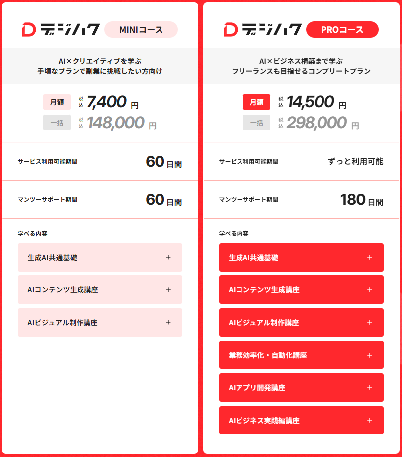 デジハク生成AIは、実践的なAIスキルを身につけて、確実に成果を出したい方に最適な選択肢です。