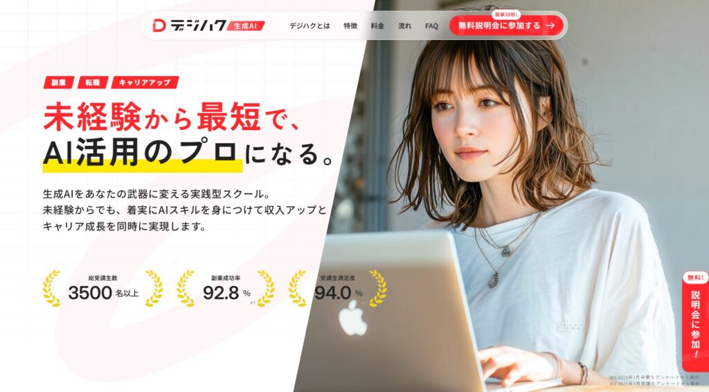デジハクは「AIを使って成果を出す」ことに特化したスクールです。